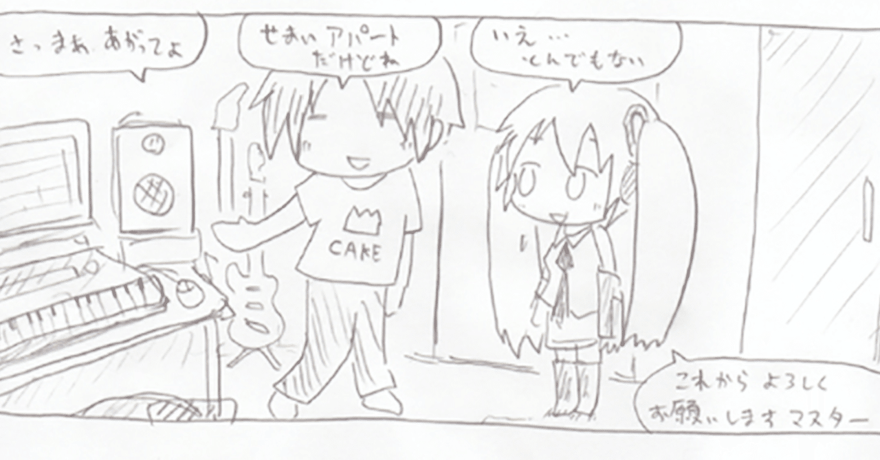 12年前に描いたこのマンガのあらすじは「初音ミクに唄わせるつもりだった曲を、人間が歌って、人気になってしまう」といったものですが、現在、近しいことがもしかしたら起こっているかもしれないですね。