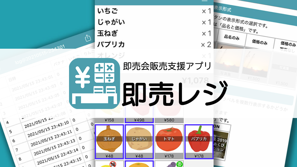 今回タブレットは試聴用の他に会計用も兼ねていて、「即売レジ」というアプリを入れていました。