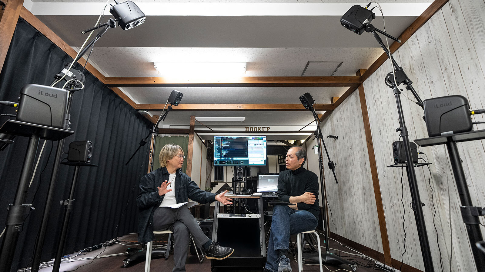 奥側にShuさんがこちら向きで座って、上記記事の画像では機材が置かれている部分に椅子が並んでいる感じです。
